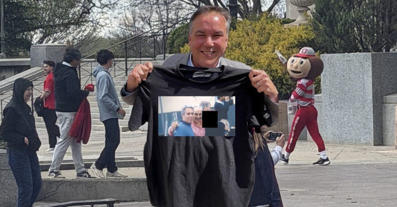 But it’s apparently easier for our beautiful mayor to hold a t-shirt as part of a corporate astroturf campaign to support women, rather than donate the $90,000 he has taken from Wexner, the unindicted Epstein co-conspirator who co-founded the Partnership and is still listed as “Chairman Emeritus.”