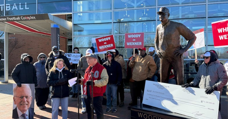 Ringleader Michael DiSabato, a former Ohio State wrestler, escalated his group’s demands from a similar summit in December, where they called on the university to remove the name of Central Ohio billionaire Leslie Wexner from the Woody Hayes Athletic Center.