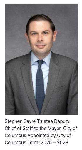 The board features a law partner, a CEO, a hospital lobbyist, an Ohio State Vice President, a non-profit president, an environmental organization’s Chief of Staff, a utility executive, a chief program officer, a trustee of an “innovation technology hub,” the president of a real estate firm, a labor union executive, a university vice president, and the Chief of Staff to the odious Mayor Suburbs.