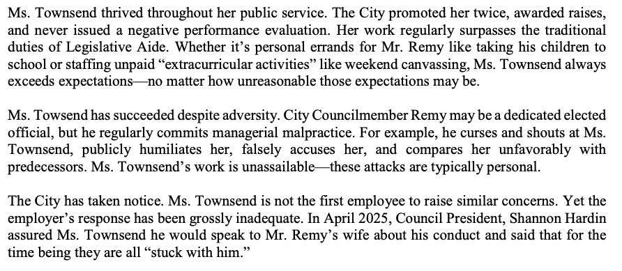 Still, it’s worth noting that everyone—from city council to city attorney Klein—stayed silent about these nasty allegations throughout Remy’s campaign, where he was also allowed to shovel at least $70,000 to Tiara Ross, who won by 1,500 votes in a race she enjoyed every institutional advantage.