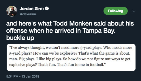 Monken took over the Buccaneers' preseason play-calling and never gave the responsibilities back because he only hits dingers.