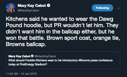 The Almighty Cleveland Browns introduced new head coach Freddie Kitchens yesterday. While I always knew the NFL’s reckoning would one day come, it’s surreal to be living in the moment.