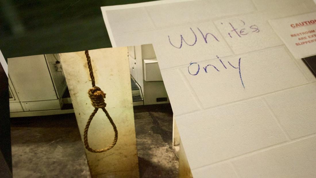 A workplace where black employees were warned a white colleague's "daddy" was in the Ku Klux Klan. Where white workers wore shirts with Nazi symbols underneath their coveralls.