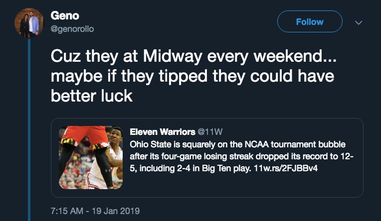 The Basketbucks apparently have lost four straight in the Big Ten. And it’s deserved, according to a tweet from a guy named “Geno” that I refuse to fact-check.