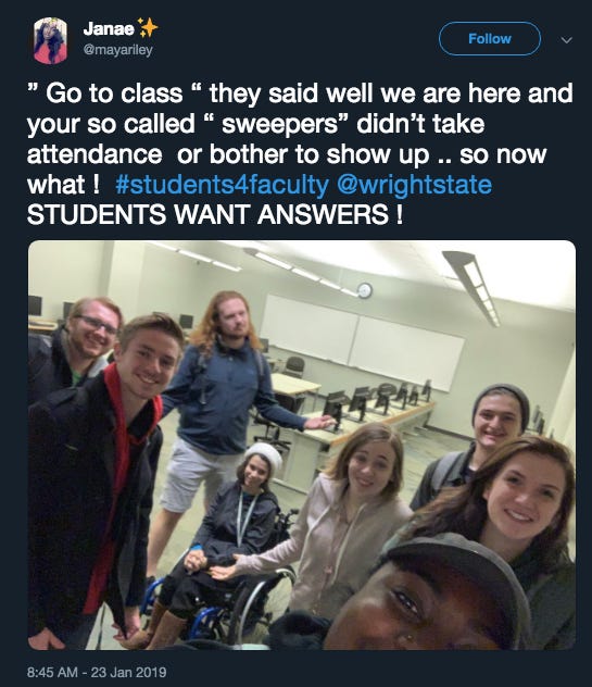 Wright State paid scab “sweepers” to go to classrooms and take attendance. They couldn’t get them all: