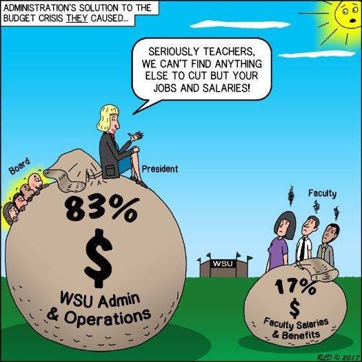 The latest example is Wright State, where inept managers created a fiscal crisis then asked faculty to take a reduced package after bragging to the media about the danger being in the rear-view mirror. I don’t hold a fake job title like “economist” but that seems unfair to teachers.