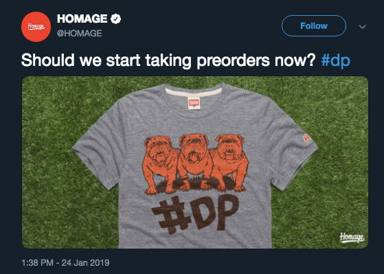 And #DP — honestly? Until then, nobody had ever referred to the Dawg Pound as the “DP.” If I walked up to a random Muni Lot tailgate and said, “Hey, y’all ready to head to the DP?” an off-duty factory worker would cudgel me to death with a $5 dog bone.