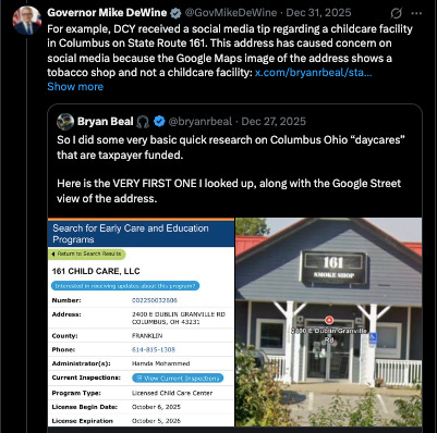 My old texting buddy, Governor Mike DeWine, surgically disassembled those claims on New Year’s Eve, even refuting one viral allegation that a non-existent daycare was actually a smoke shop: