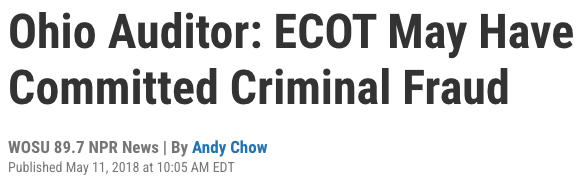 And that’s why I still viscerally shake when thinking about the ECOT scandal, which I talked about incessantly during my tilt-at-windmills Statehouse run in 2018. It’s one of the biggest rip-offs in state history