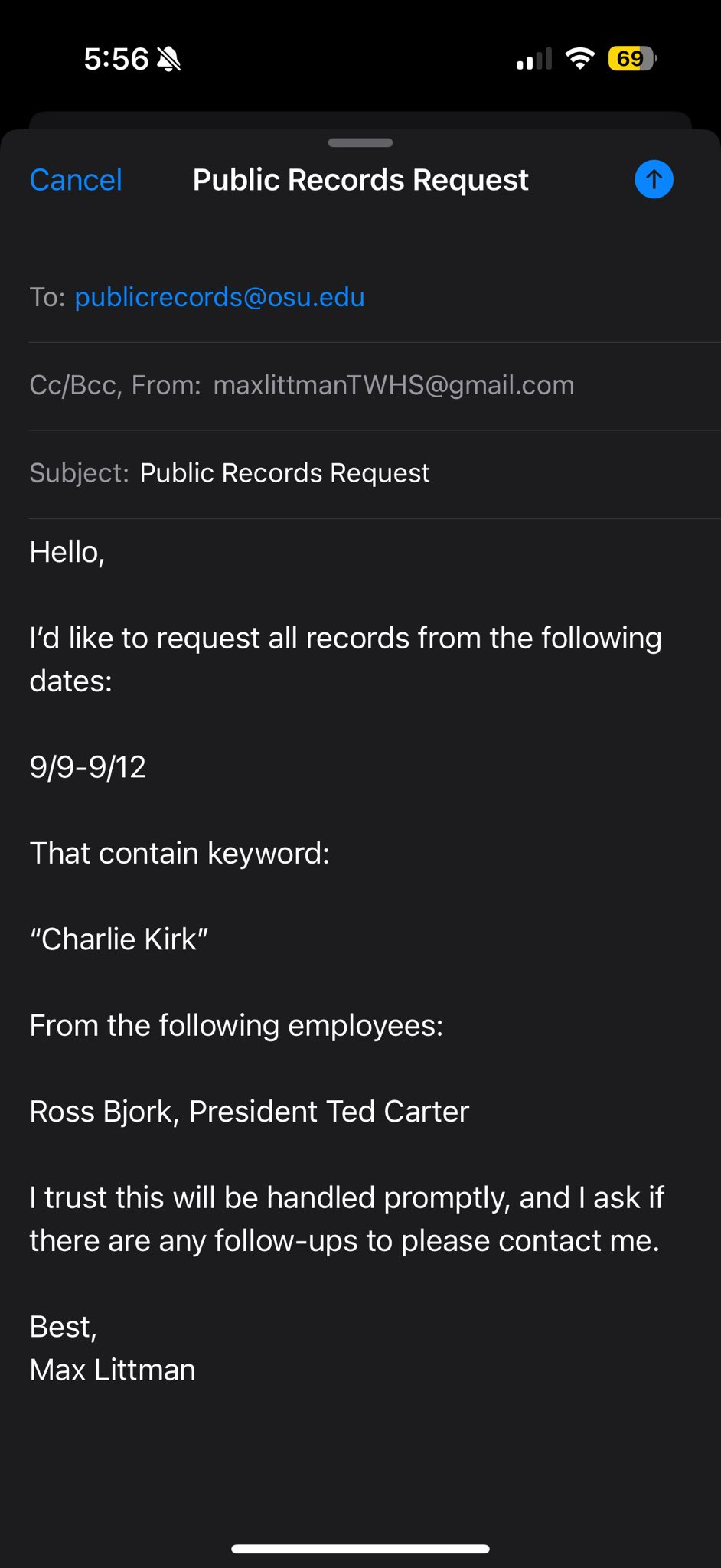 Earlier this year, The Rooster successfully sued the university in the Ohio Court of Claims after the university failed to release records in a timely fashion as required by state law.