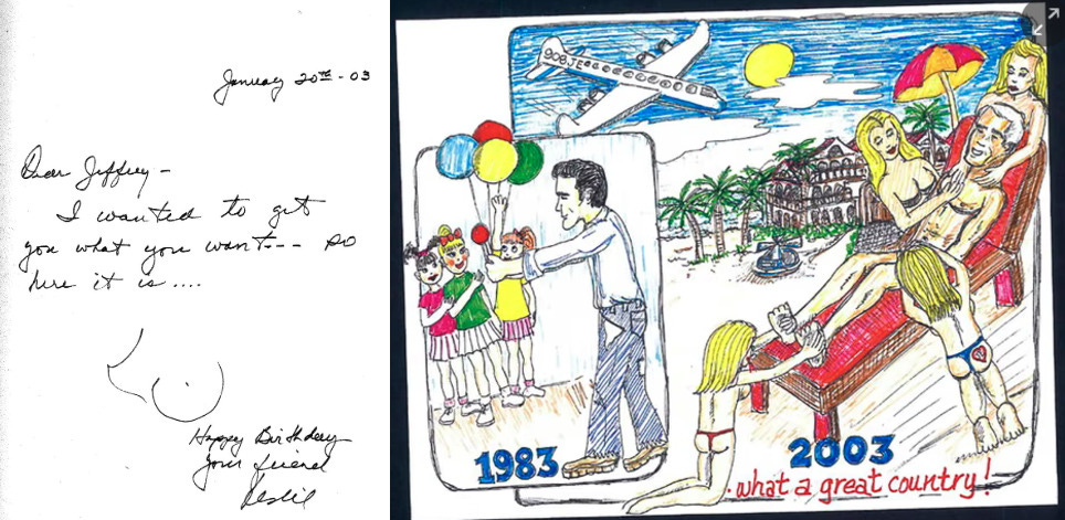 If nothing else, that would explain why, five years earlier, Wexner wrote “bawdy” personalized birthday card as part of a celebratory book in which Epstein’s associates, from all levels of his life, made overt references to his taste for young women?