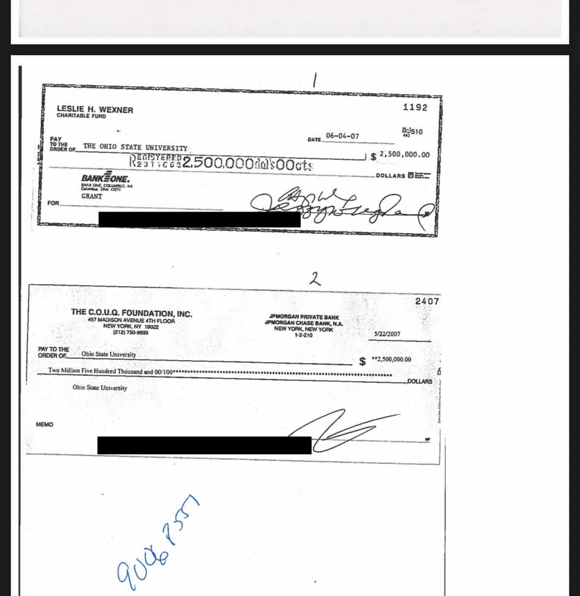 There is no evidence that Wexner, who, again, was in his second stint as Ohio State trustee, contacted the university administration about the problems that $2.5 million check from Epstein might pose.