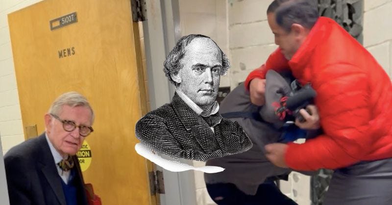I declared all previous agreements null and void, and announced we would be following Gee to the car, especially when we caught Perez huddling with Gee and Professor Christopher Green, the second-in-command at the Salmon P. Chase Center for intellectual diversity and free speech.