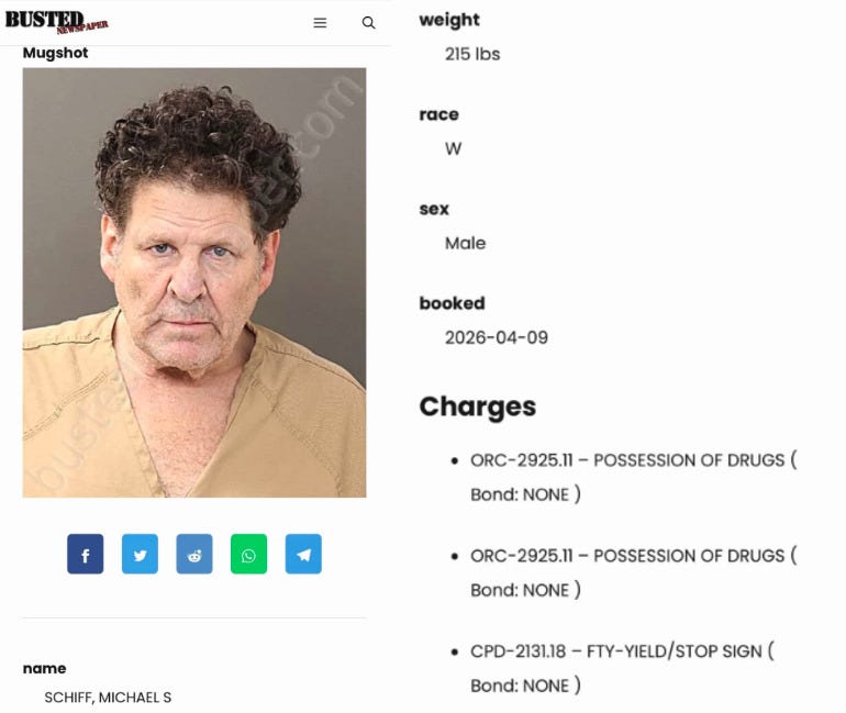 Or so I thought this morning, when his brother, Michael Schiff, had been arrested on felony drug charges.