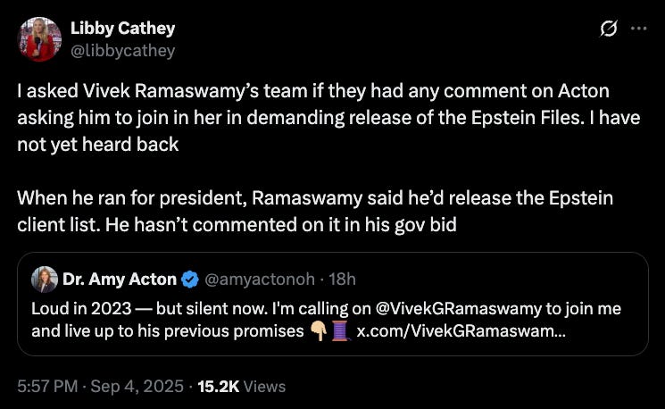 Earlier today, I wrote about Ohio Republicans from the U.S. House of Representatives to the Ohio House of Representatives, all being culpable in the Jeffrey Epstein cover-up, whether that’s blocking a full and transparent release of the files on the federal level, or taking money from known Epstein associate Les Wexner on the state level.