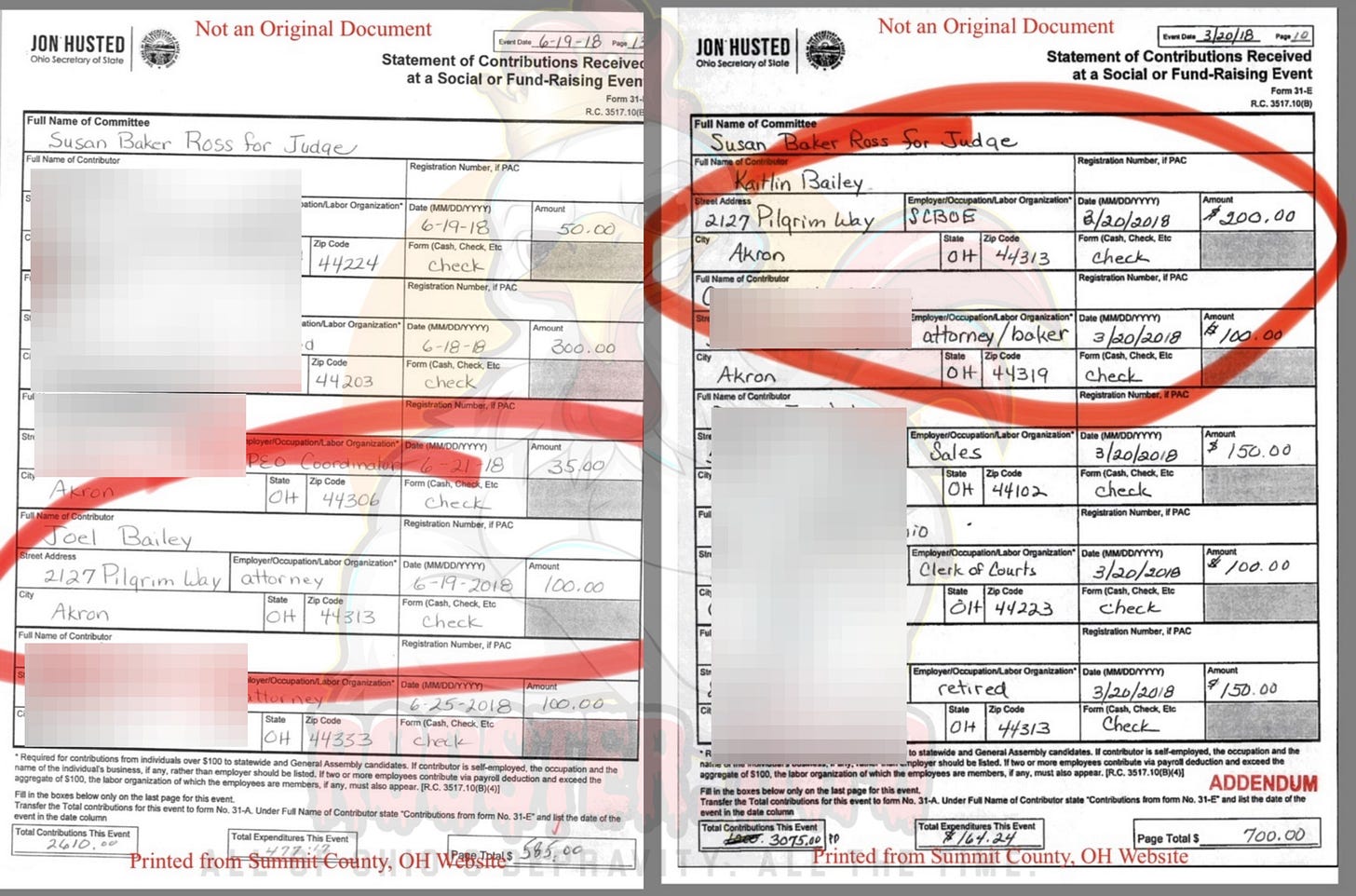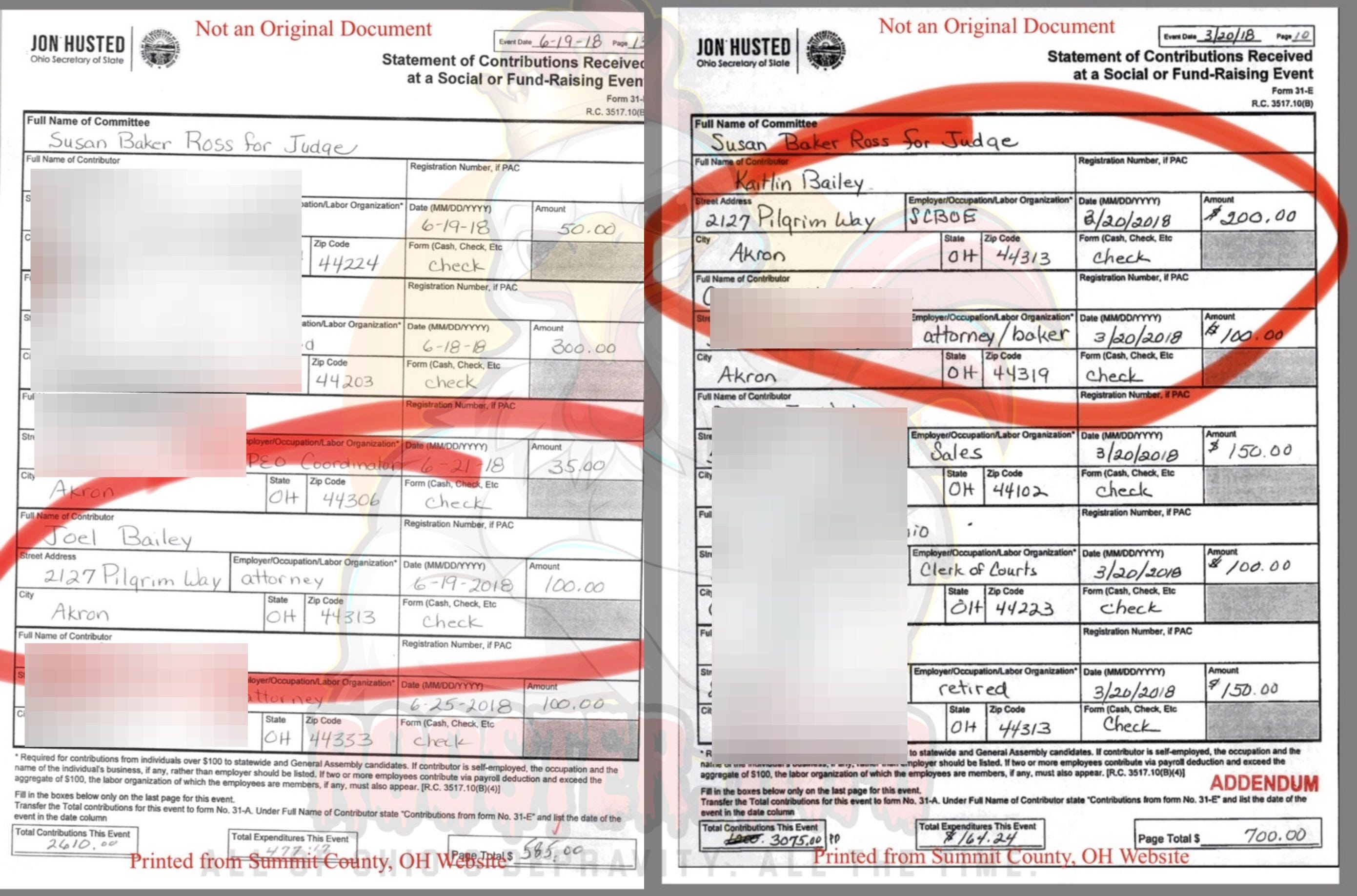 In 2018, Judge Baker accepted political donations from Joel D. Bailey, a since-fired FirstEnergy lobbyist whom Baker granted immunity to testify in the trial, and from another woman (wife? daughter?) tied to the same Akron address.