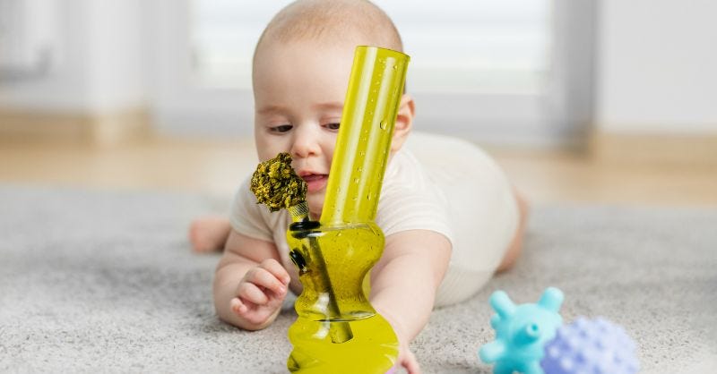 Personally, I think it’d be rather easy to prevent a two-year-old from digesting water from a “marijuana device known as ‘a bong.’” But I have to assume alcohol was also involved, which is the drug that the dinosaurs never seem to have the same energy for.