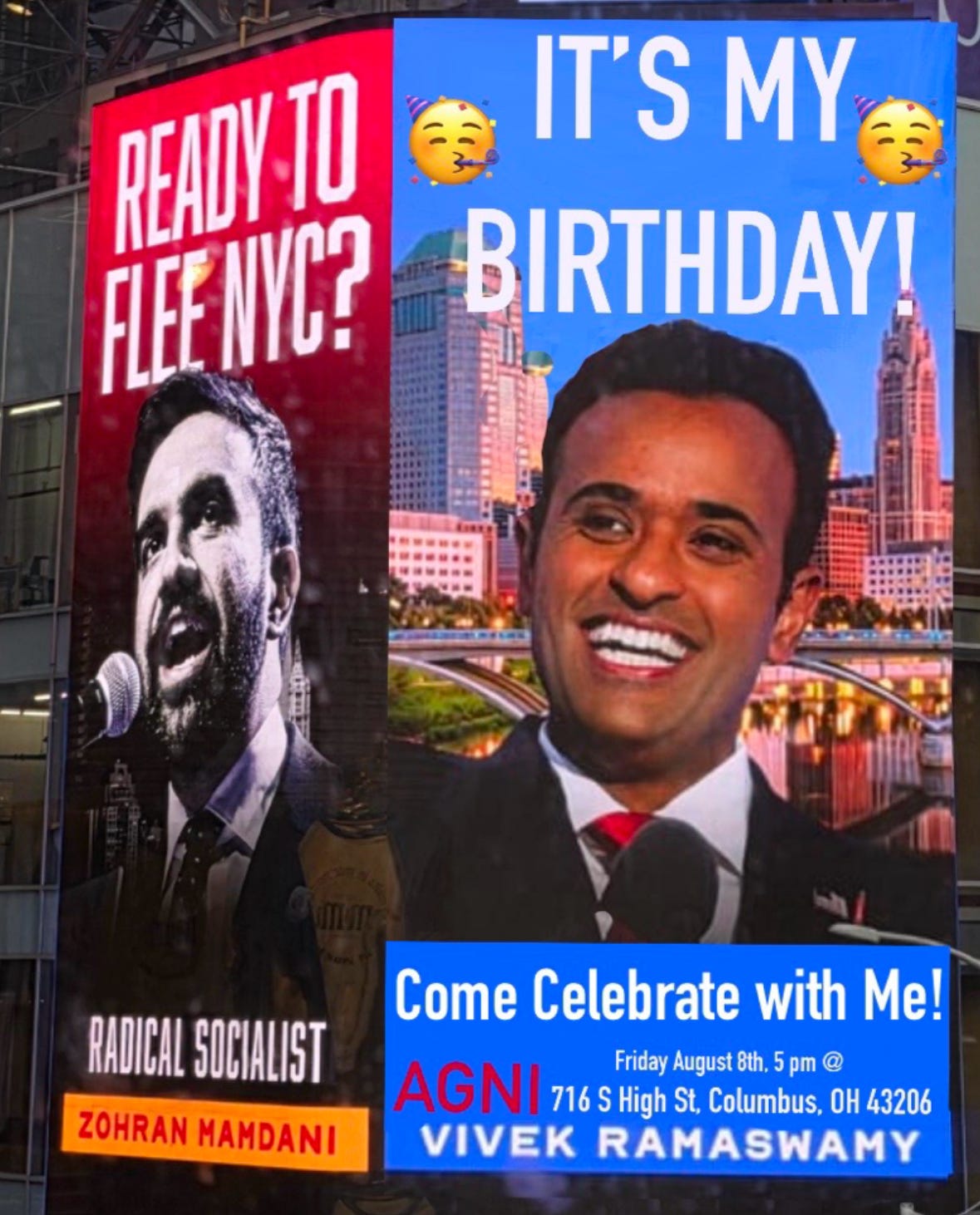 Vivek Ramaswamy turns 40 on Saturday, and he'll celebrate with 50 of the freakiest Ohio Republicans at a swanky German Village establishment on Friday night.