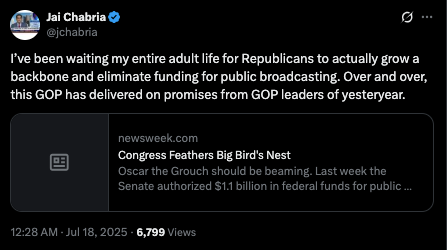 This policy will hurt rural areas the most. But it easily folds into the Republican playbook of killing independent media institutions to create a void that can easily be filled by their billionaire-funded network of propagandists.
