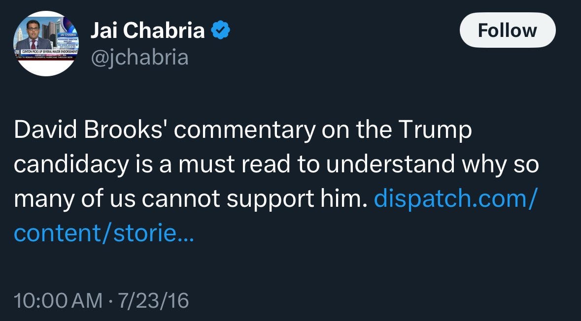 Chabria, like a lot of Ohio Republicans, would rather make money than stick to their principles, which is why he’s now working for a charlatan whose only requirement to be governor is that pedophile Donald Trump wanted him out of Washington D.C.