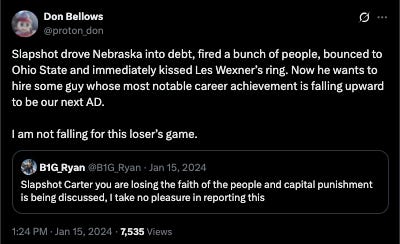 But Slapshot understood he had leverage after Ohio State’s previous president went down in flames (largely thanks to Jeffrey Epstein’s No. 1 client, Les Wexner).