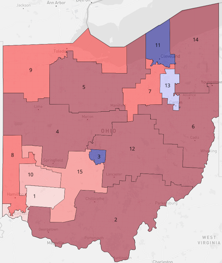 While the official map has yet to be rolled out, The Rooster can independently confirm that Ohio Politics Guru has created an accurate replica, shaded with the 2024 presidential election results per district: