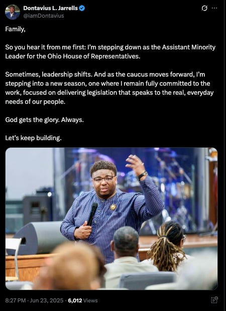 Jarrells has a boulder-sized chip on his shoulder, which I can respect. And though I bare him no personal animus, I don’t think his tweet about “stepping down” from leadership was on the ball.