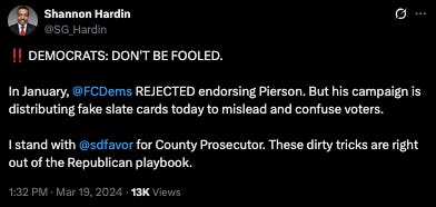 It’s why then-City Councilwoman Shayla Favor worked so hard to block the endorsement of Anthony Pierson in last year’s County Prosecutor race, and why elected city Democrats went nuclear when Pierson’s campaign handed out blue pieces of cardboard anyway: