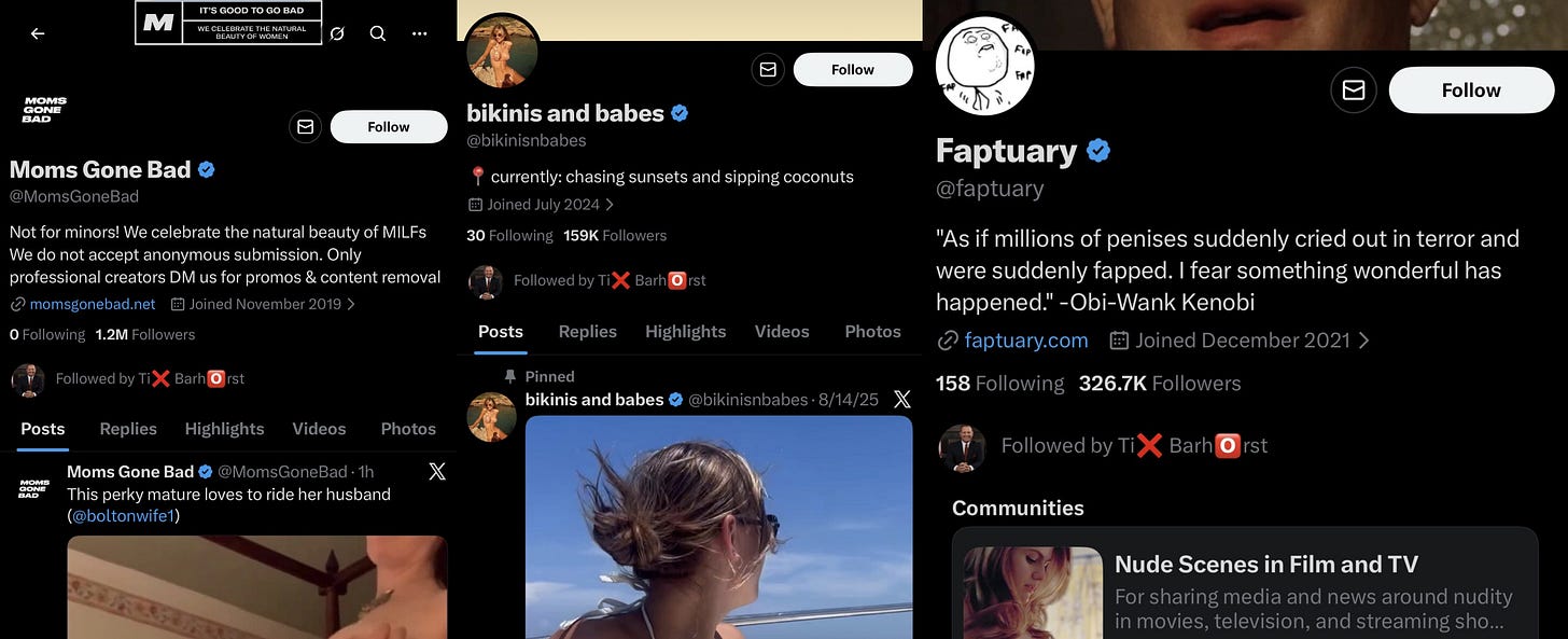Because at least three of Barhorst’s follows are explicitly pornographic: