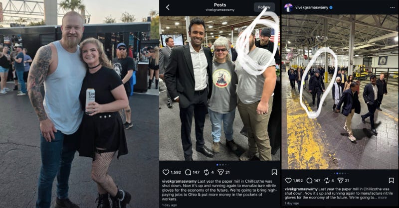 Owens was last seen protecting Ramaswamy on Jan. 12 in Chillicothe, when Ramaswamy hilariously claimed that the ad-hoc renovation of the Paper Mill was somehow a pro-worker win despite losing over 800 unionized jobs.