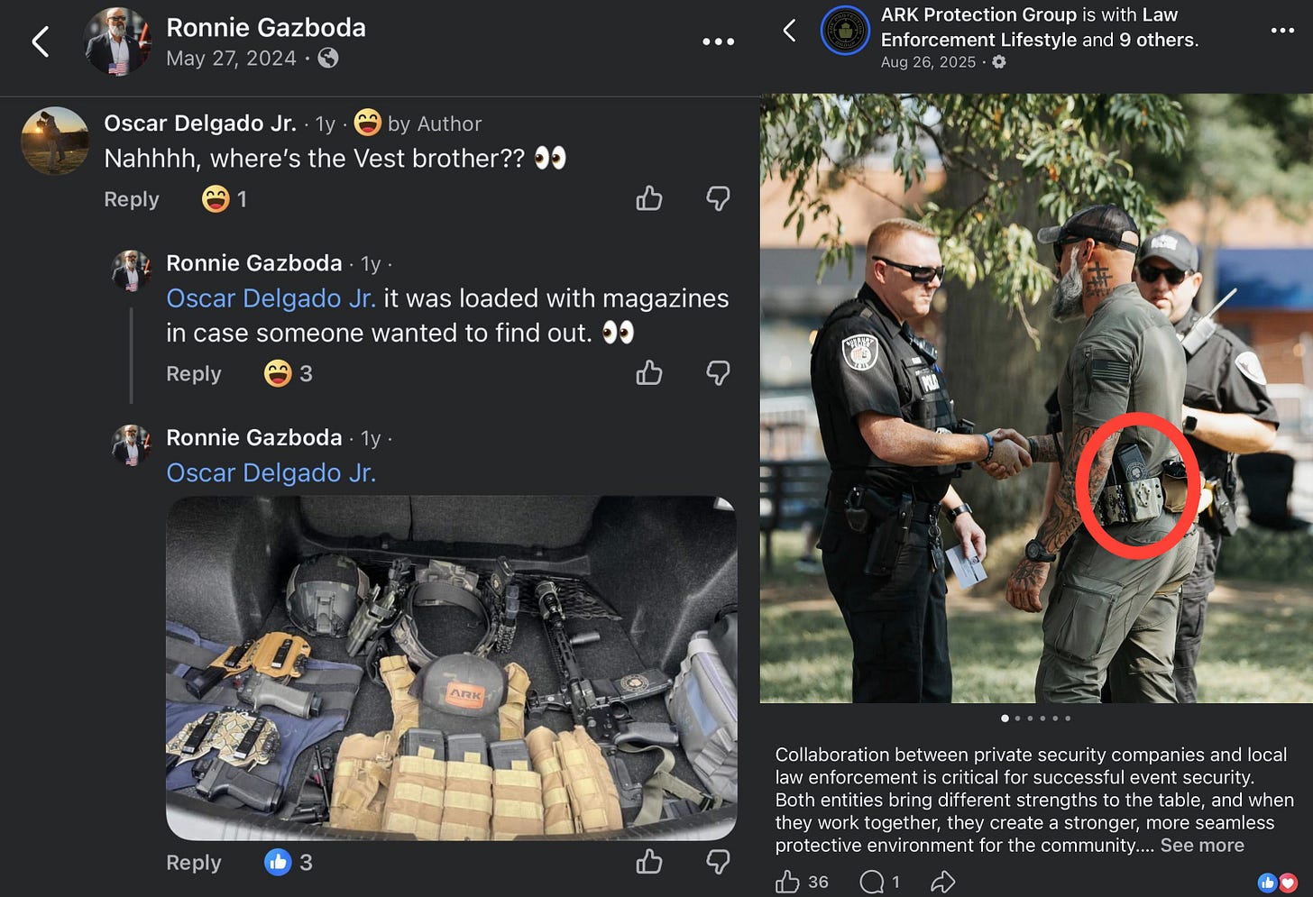 In May 2024, Gazboda boasted on Facebook about carrying loaded AR-15 magazines in his trunk.