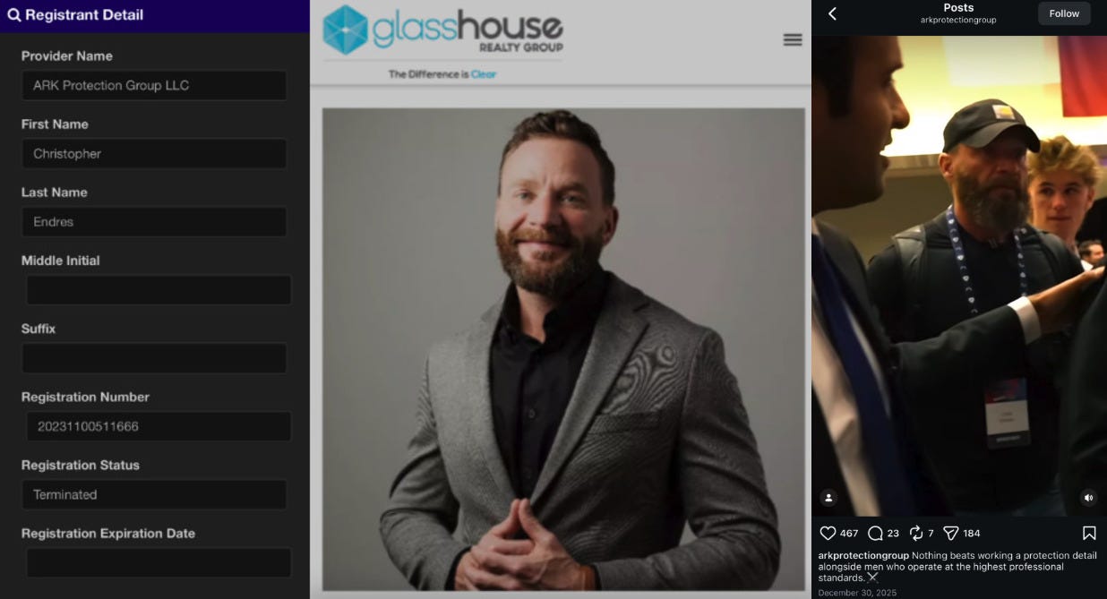 Owens’ partner that night, Christopher Endres, apparently moonlights with ARK Protection Group while off from his day job as a realtor in Dayton.