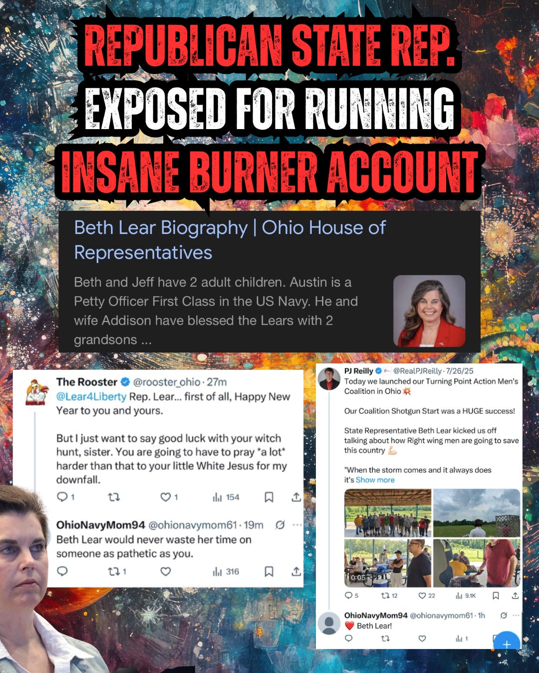 But that’s exactly what happened to “OhioNavyMom61” and State Rep. Beth Lear (R-Kooksville) after what I can only assume was her guzzling a half bottle of high-priced Bourbon.